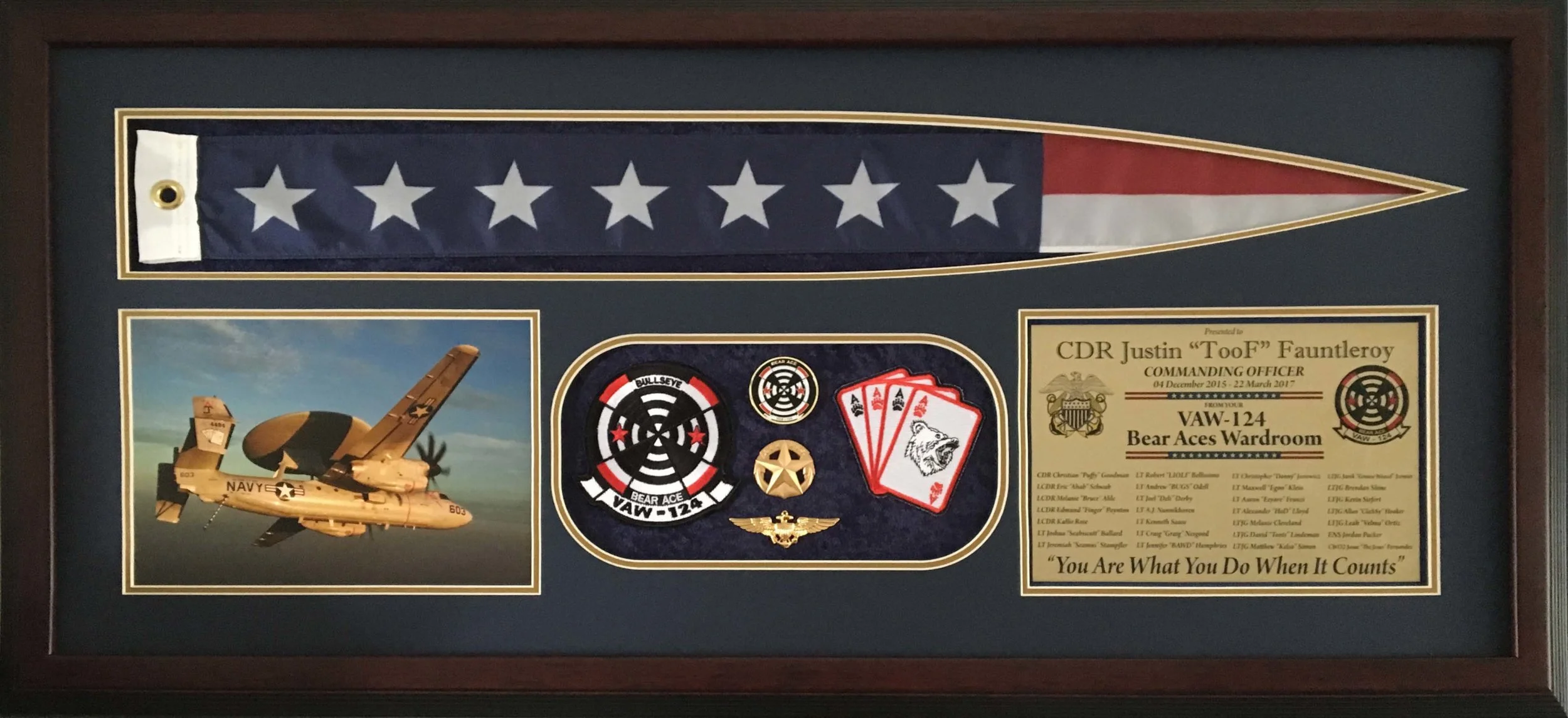 Our standard hail & bail frames are completely customizable. We do all of the plates in house and specialize in color dye sublimation to create a truly unique frame for your command. All photos are printed on wide format EPSON printers and Photoshop editing is done when requested or as needed.